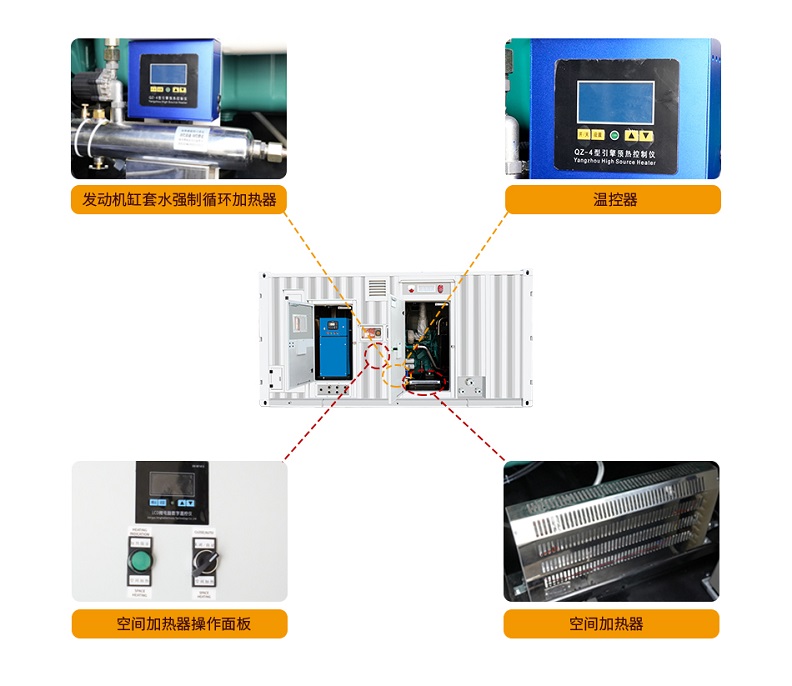 比如客戶需在北方冬天較為寒冷的地方使用,我們可以給每臺集裝箱內(nèi)為機組安裝了機油加熱器和冷卻液加熱器兩個暖風(fēng)設(shè)備,即使在現(xiàn)在這種較為極端的嚴(yán)寒天氣,也能讓機組快速進入工作狀態(tài),而不必?fù)?dān)心低溫困擾。